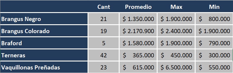 Promedios 24° Rte Anual Brangus – Gral San Martin – Chaco